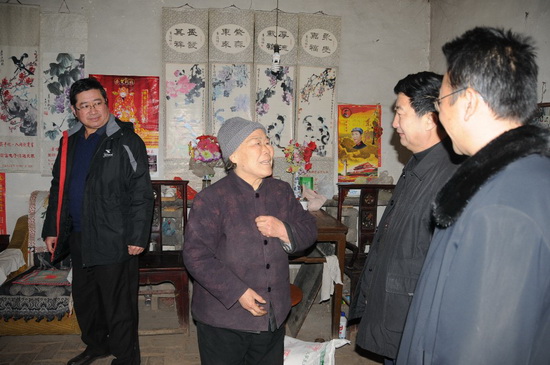 1月18日上午,集團(tuán)公司監(jiān)事會(huì)主席、黨委副書記、紀(jì)委書記滕忠斌,副總經(jīng)理兼駐臨朐幫扶領(lǐng)導(dǎo)小組組長穆乃杰,在臨朐城關(guān)街辦有關(guān)領(lǐng)導(dǎo)及殷家河村兩委領(lǐng)導(dǎo)陪同下,走訪慰問幫扶村的革命家庭、長壽家庭、孤寡家庭及困難家庭等十個(gè)家庭戶代表,并送去面粉和食用油,表達(dá)集團(tuán)公司對幫扶村村民的新春祝福和美好祝愿。集團(tuán)公司總部有關(guān)部門、第九分公司有關(guān)人員和幫扶領(lǐng)導(dǎo)小組成員參加了走訪慰問活動(dòng)。 ![]() 走訪孤寡老人 ![]() 走訪革命家屬家庭 ![]() 走訪96歲壽星戶