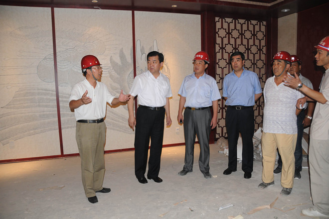 7月16日上午,市委書記許立全在市委副書記王獻(xiàn)玲、副市長夏芳晨、王樹華及市直有關(guān)部門負(fù)責(zé)同志陪同下到會展中心視察。集團(tuán)公司董事長徐鵬強(qiáng)全程陪同許立全視察。 許立全在會議中心西側(cè)下車,查看了展覽中心和會議中心外裝情況、廣場和園林綠化情況,隨后登上會議中心二層察看了內(nèi)裝并重點(diǎn)察看了千人宴會廳的內(nèi)裝情況,對會展中心的接待能力進(jìn)行了了解。許立全聽取了市建設(shè)局副局長張文在現(xiàn)場關(guān)于工程建設(shè)基本情況的匯報(bào),對工程建設(shè)情況表示了滿意。