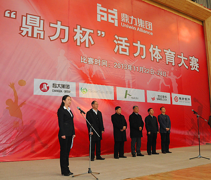 2013年11月22日至24日,由山東鼎力投資聯(lián)盟主辦、濰坊銀行承辦的第一屆“鼎力杯”活力體育大賽在濰坊一中體育館舉行。包括集團(tuán)在內(nèi)的聯(lián)盟五個(gè)理事單位均組隊(duì)參加了此次大賽。