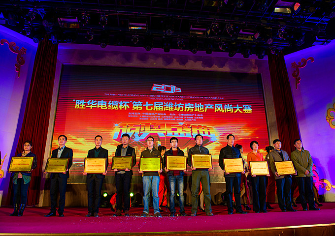 2013年12月18日,濰坊地產界規(guī)格最高的年度盛宴——2013 “勝華電纜杯”濰坊地產年會暨第七屆風尚大賽頒獎盛典在東方大酒店盛大啟幕。濰坊市人大常委、濰坊市建筑業(yè)協(xié)會會長、集團董事長徐鵬強作為特邀嘉賓出席活動并為獲得2013年最具投資價值樓盤和最具市場影響力樓盤獎項頒獎,集團副總經理兼泰和公司總經理姜建魯也應邀參加了頒獎盛典。集團泰和公司獲“2013年度誠信房地產企業(yè)”殊榮,寶通陸號小區(qū)獲“2013年度最佳生態(tài)宜居樓盤”獎,成為濰坊房地產市場上的佼佼者。
