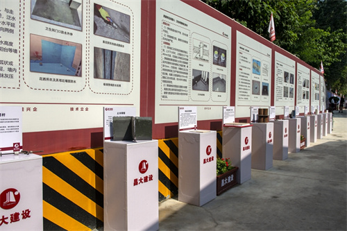 觀摩會現(xiàn)場,項目部人員結(jié)合現(xiàn)場樣板,對地下室、外墻、屋面及三小間防水做法和具體施工工藝向觀摩領(lǐng)導和嘉賓進行了詳細講解。對于該項目的樣板做法,省住建廳和市級住建部門的領(lǐng)導與專家均給予了高度評價,并已掛省廳網(wǎng)站全省云觀摩,同時在全市范圍推廣應用。