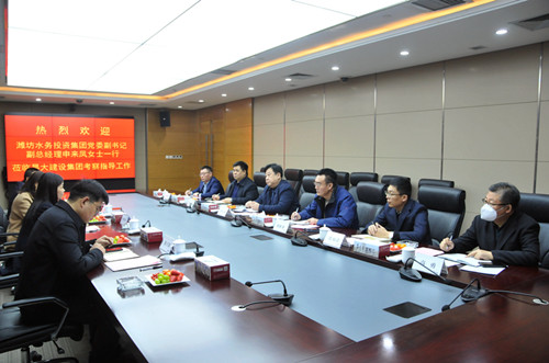 2023年1月10日上午,濰坊水務投資集團黨委副書記、副總經理申來鳳一行4人來集團公司訪問,集團總裁朱九洲陪同。賓主雙方就項目合作、國企混改等方面進行座談交流。 集團副總裁劉雁冰出席相關活動。 集團公司企業(yè)發(fā)展部總經理張煒、財務部總經理張福濤、法務部總經理高勇、三建公司總經理相有鵬參加相關活動。