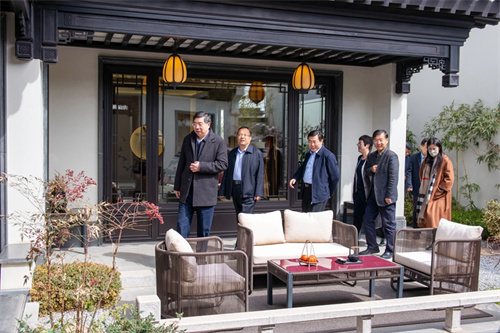 2023年3月25日上午,山東省住建廳廳長(zhǎng)王玉志到集團(tuán)中頤龍湖康養(yǎng)小鎮(zhèn)項(xiàng)目參觀調(diào)研,安丘市委書記賈勤清,市住建局黨組書記、局長(zhǎng)鐘光文、副局長(zhǎng)戴玉霞,集團(tuán)董事長(zhǎng)徐鵬強(qiáng)陪同調(diào)研。王玉志廳長(zhǎng)依次參觀了小鎮(zhèn)服務(wù)中心、頤園中式合院園區(qū)與樣板間、小鎮(zhèn)頤樂康養(yǎng)中心。聽取了小鎮(zhèn)總體規(guī)劃布局匯報(bào),對(duì)中式合院的建筑文化、小鎮(zhèn)宜人的自然環(huán)境以及康養(yǎng)配套運(yùn)營(yíng)方面的精心考量與服務(wù)經(jīng)驗(yàn)給予了高度評(píng)價(jià)。