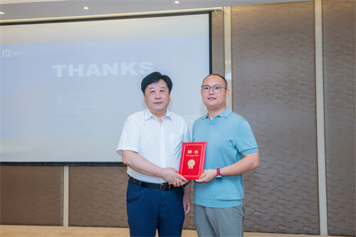 論壇期間,集團(tuán)公司特聘蘇州方石科技有限公司副總經(jīng)理朱海廷為集團(tuán)首席智能建造專家并由總裁朱九洲為其頒發(fā)了聘書。