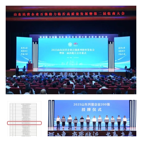 2025年8月19日,2025山東民營(yíng)企業(yè)百?gòu)?qiáng)系列榜單發(fā)布會(huì)暨第二屆臨商大會(huì)開(kāi)幕式在臨沂市舉行。集團(tuán)公司副總裁劉雁冰參會(huì)并代表集團(tuán)領(lǐng)獎(jiǎng)。省人大常委會(huì)副主任,省工商聯(lián)主席、省總商會(huì)會(huì)長(zhǎng)王隨蓮,臨沂市委書(shū)記張寶亮分別致辭,省委統(tǒng)戰(zhàn)部副部長(zhǎng)、省工商聯(lián)黨組書(shū)記張?chǎng)H等與會(huì)領(lǐng)導(dǎo)為上榜企業(yè)代表頒牌,省工商聯(lián)黨組成員、副主席陸怡發(fā)布系列榜單,省工商聯(lián)副主席郭建禮發(fā)布分析報(bào)告。